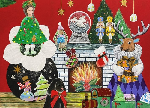 문희정 작가는 종이 위에 과슈(Gouache)로 지구와 우주, 그리고 이상향의 세상을 화사한 컬러와 따뜻한 메시지로 담아냅니다.