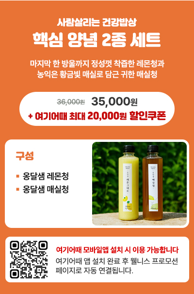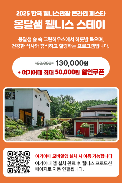 여기어때 '옹달샘 힐링 스테이' 할인 받으러 가기여기어때 '사람살리는 건강밥상 핵심양념 체험키트' 할인